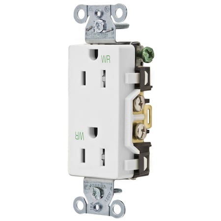 Hubbell DR15WHIWRTR Receptacle Weather and Tamper Resistant, Deco Face, 15 amp, 125V, White