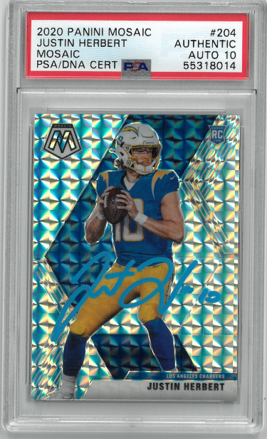 Justin Herbert signed 2020 Panini Mosiac Rookie Card (RC) #204- PSA Graded 10 Authentic Auto (Los Angeles Chargers) - Football Slabbed Autographed Rookie Cards