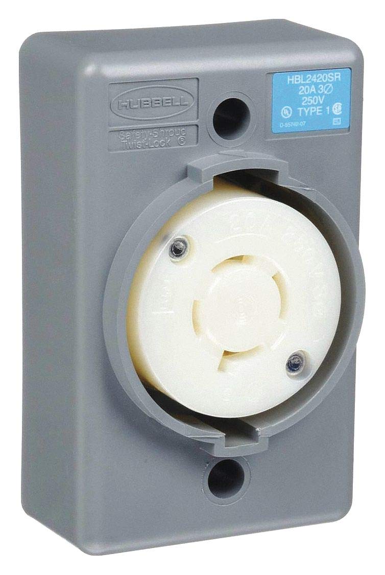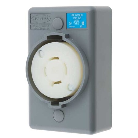 Hubbell HBL2420SR Locking Safety Shroud Receptacle, L15-20R, Surface Mount, Gray