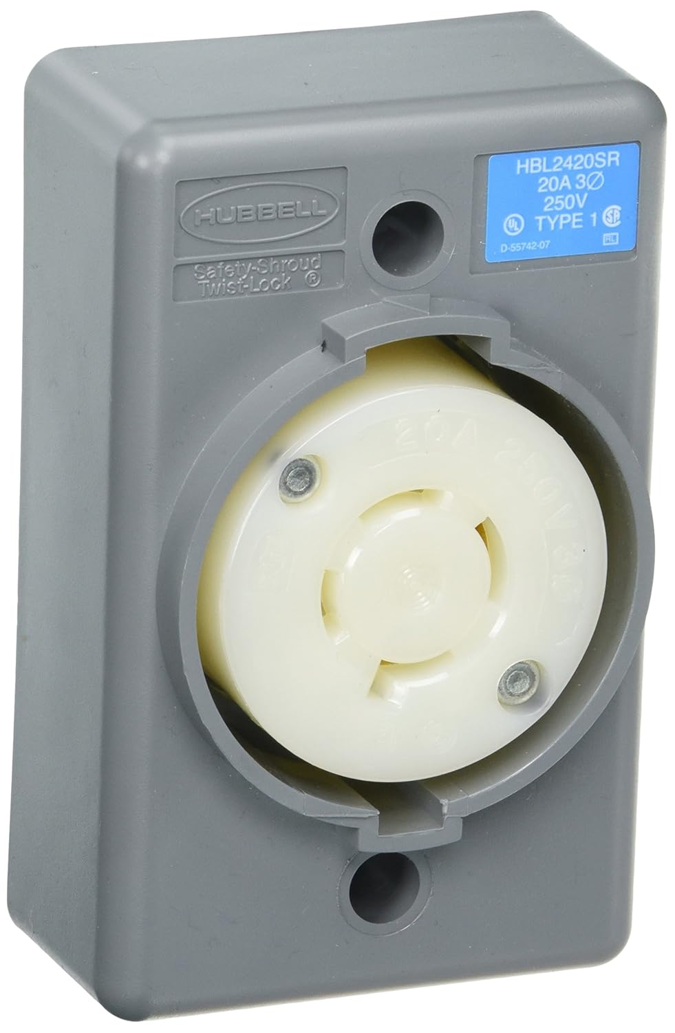 Hubbell Wiring Devices Lckng Sfty Shrd Rcpt Surface Mtg L15-20 Rohs Compliant: Yes - HBL2420SR