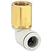 | Feature | <b>Price For:</b> Each <b>Standards</b>: RoHs <b>Item</b>: Female Elbow, 90 Degrees <b>Color</b>: White/Gray <b>Body Material</b>: Polybutylene Terephthalate <b>Fittings Sub-Category</b>: Elbows <b>Max. Pressure</b>: 145 psi <b>Basic Material</b>: Plastic <b>Temp. Range</b>: 23 Degrees to 140 Degrees F <b>Connection Type</b>: Tube x Female BSPT <b>Tube Size</b>: 6mm <b>Pipe Size</b>: 3/8" <b>Hex Size</b>: 19mm <b>Country of Origin (subject to change)</b>: Singapore |