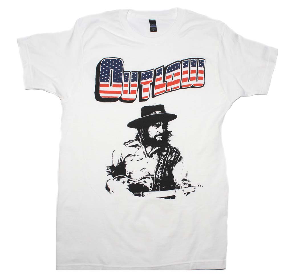 Rockline KRM-10070192-S Waylon Jennings Outlaw Adult Mens T-Shirt, White - Small