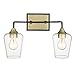 Gladys 17.25" Antique Brass and Black 2-Light Vanity with Clear Glass.