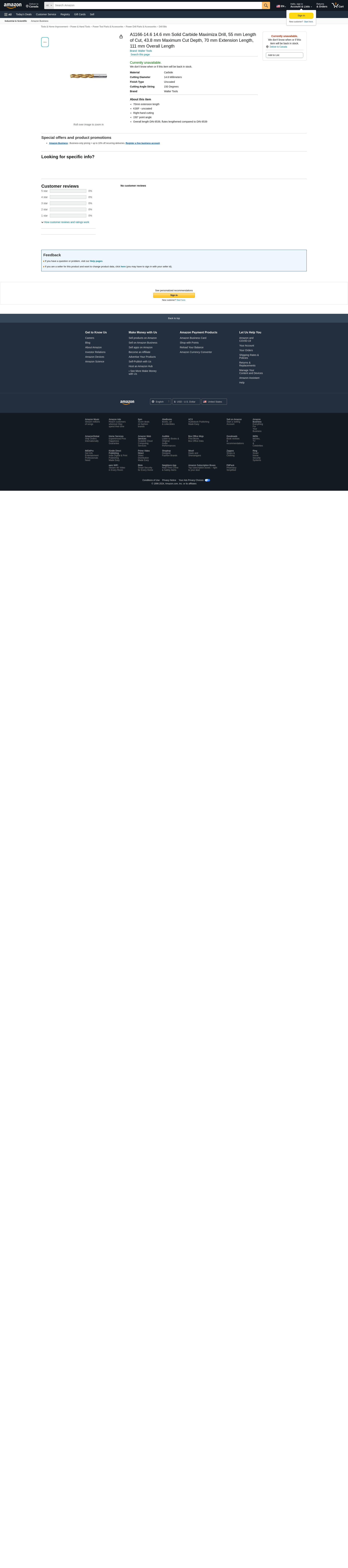 Walter Tools A1166-14.6 14.6 mm Solid Carbide Maximiza Drill, 55 mm Length of Cut, 43.8 mm Maximum Cut Depth, 70 mm Extension Length, 111 mm Overall Length