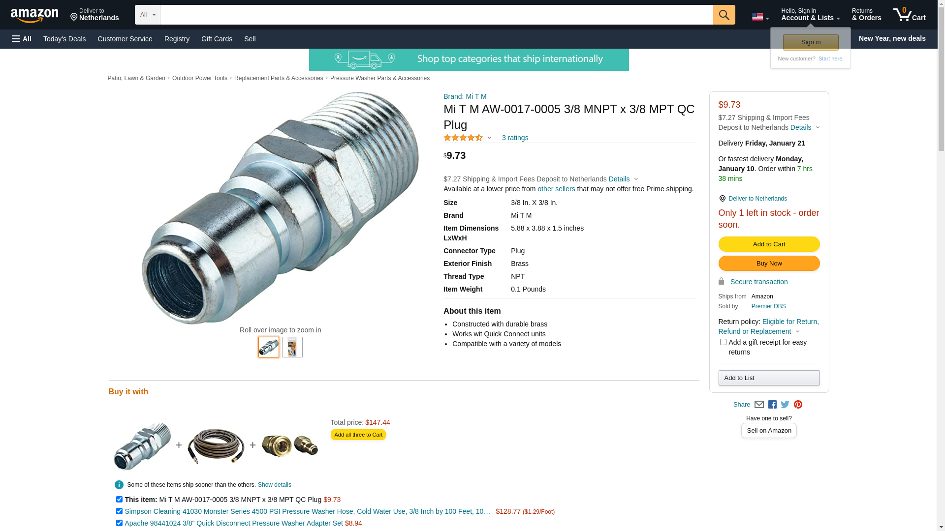 - 3/8"MPT x 3/8" plug