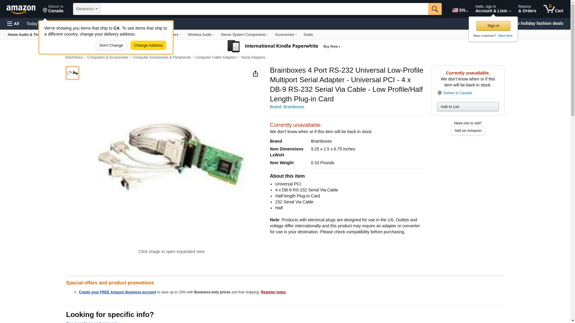 Brainboxes Limited - Brainboxes 4 Port Rs-232 Universal Low-Profile Multiport Serial Adapter - Universal Pci - 4 X Db-9 Rs-232 Serial Via Cable - Half-Length Plug-In Card "Product Category: I/O & Storage Controllers/Multiport Serial Adapters"