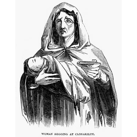 Ireland Beggar 1847 Na Destitute Woman Begging At Clonakilty County Cork Ireland Wood Engraving English 1847 Rolled Canvas Art - (18 x 24)