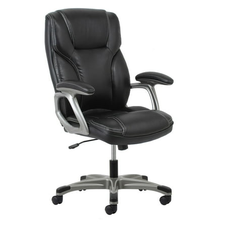 OFM ESS Collection High-Back Bonded Leather Executive Chair with Fixed Arms, Black