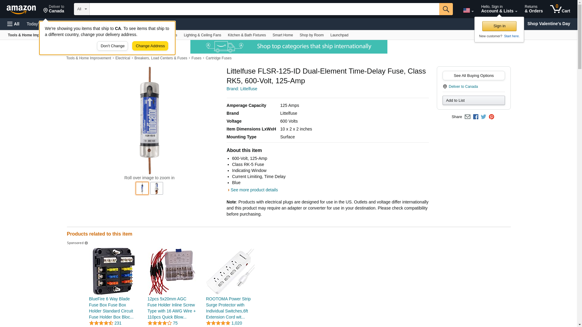Littelfuse FLSR-125-ID Dual-Element Time-Delay Fuse, Class RK5, 600-Volt, 125-Amp