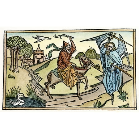 Balaam And Ass NbalaamS Ass Perceives The Angel Of The Lord Unseen To Balaam (Numbers 22-24) Woodcut From The Cologne Bible 1478-80 Poster Print by Granger Collection