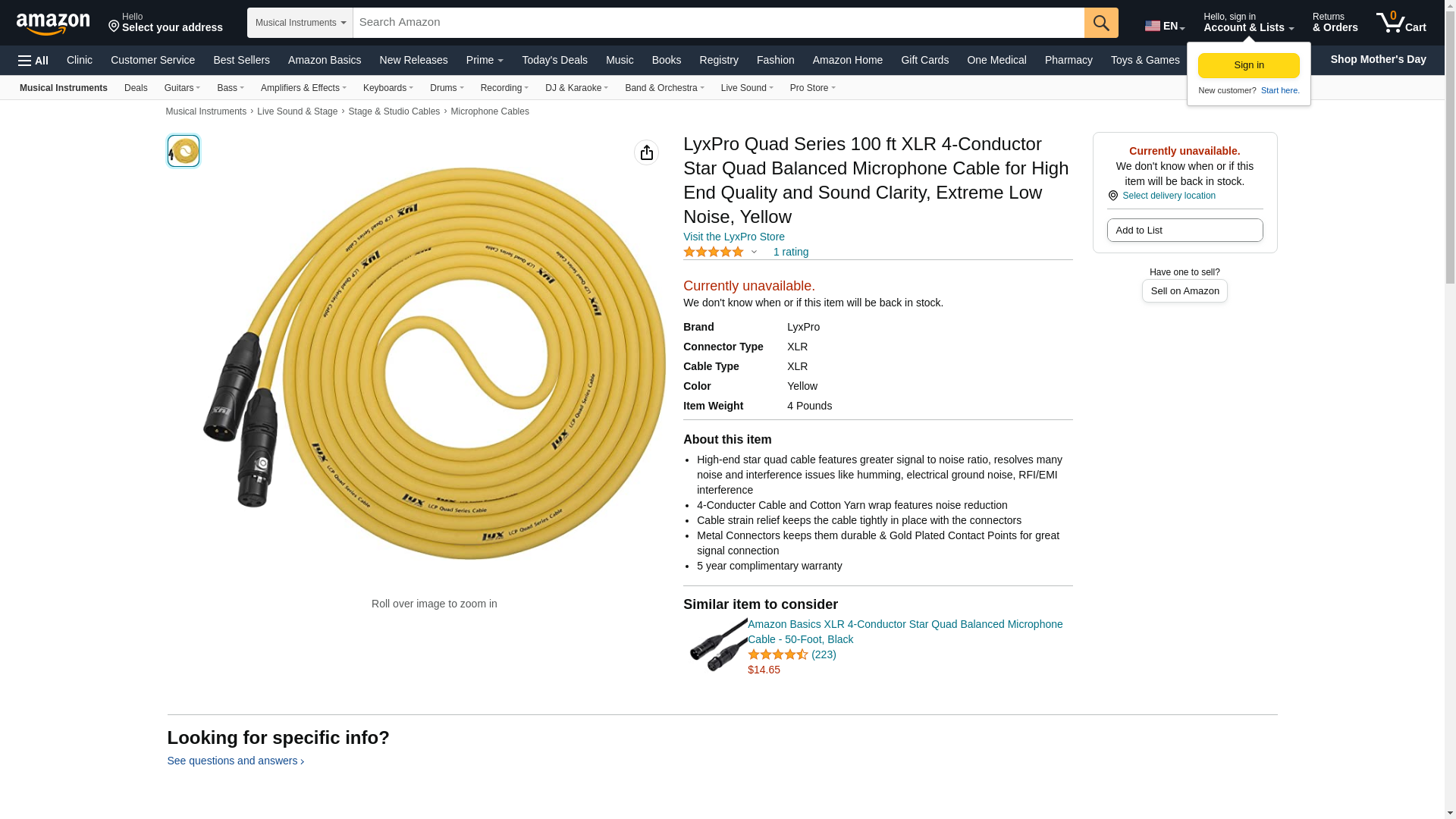 LyxPro Quad Series 100 ft XLR 4-Conductor Star Quad Balanced Microphone Cable for High End Quality and Sound Clarity, Extreme Low Noise, Yellow