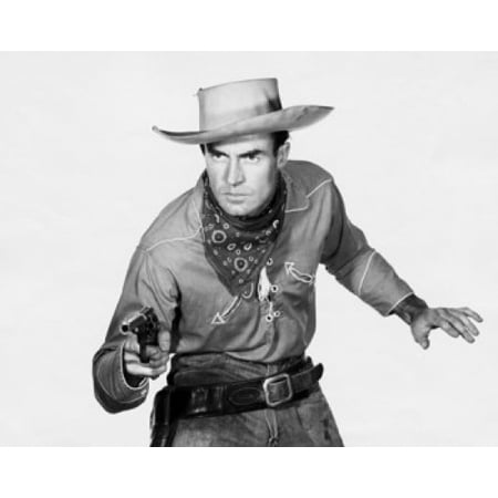Stretched Canvas Art - Close-up of a cowboy holding a pistol - Large 24 x 36 inch Wall Art Decor Size.