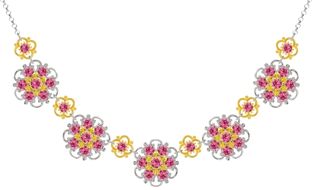 Lucia Costin Multi Flower Necklace with Red Crystals, 24K Yellow Gold
