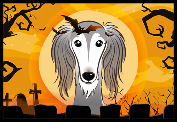 Caroline's Treasures BB1787JMAT Halloween Saluki Doormat 24x36 Front Door Mat Indoor Outdoor Rugs for Entryway, Non Slip Washable Low Pile, 24H X 36W