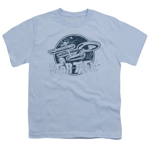 Trevco Star Trek-Retro Enterprise - Short Sleeve Youth 18-1 Tee - Light Blue, Extra Large