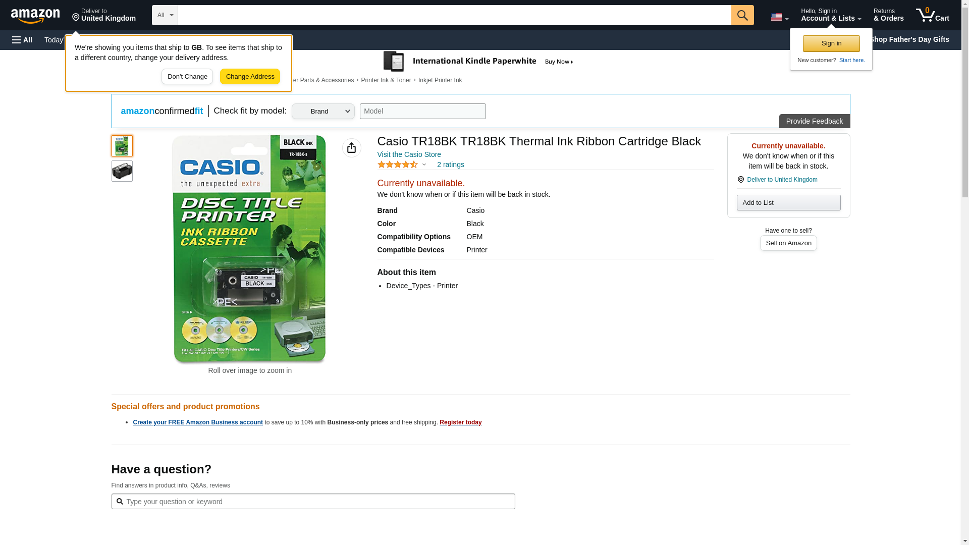 Casio? TR18BK Thermal Ink Ribbon Cartridge, Black CSOTR1