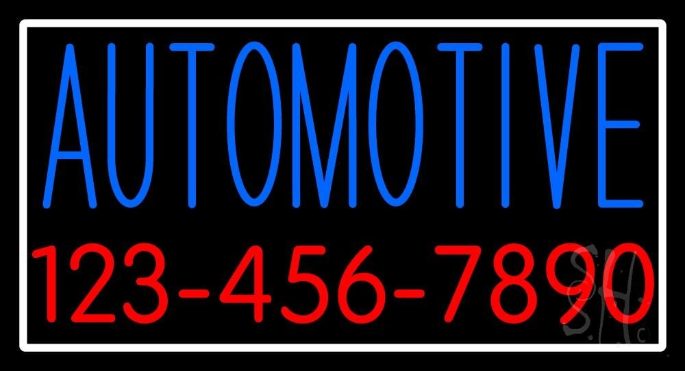 The Sign Store N105-6205 20 x 37 in. Automotive with Phone Number & Border Neon Sign - Red, Blue & White