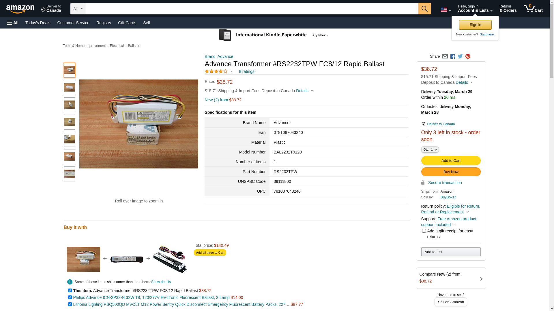 Advance Transformer #RS2232TPW FC8/12 Rapid Ballast