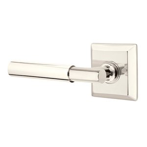 Brass Modern Hardware Collection - Passage Myles Left Handed Lever with Quincy Rose in Polished Nickel by Emtek Hardware - 8131234MYLLHUS14 | MyKnobs