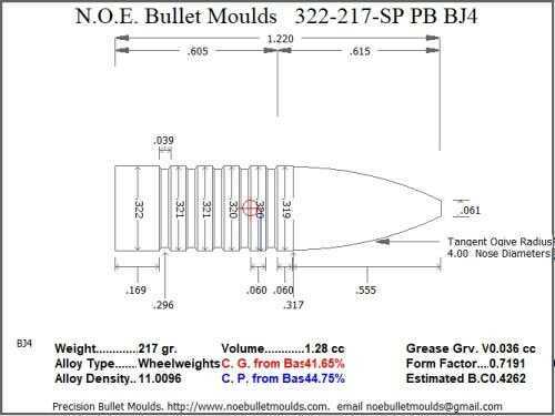 Bullet Mold 2 Cavity Aluminum .322 caliber Plain Base 217 Grains bullet with a Spire point profile type. Stop ring design for - 11229225