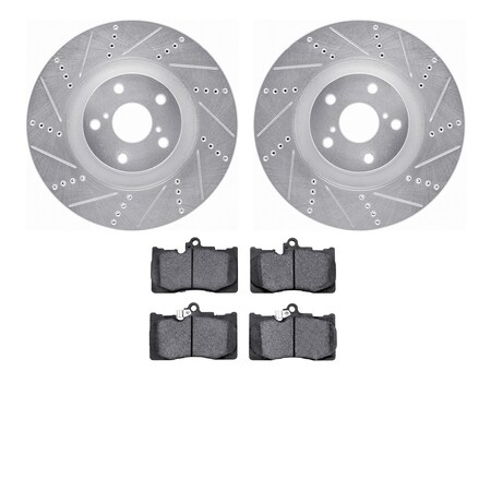 Dynamic Friction Company Front Brake Rotors Drilled and Slotted Silver with 5000 Advanced Brake Pads - 7502-75030