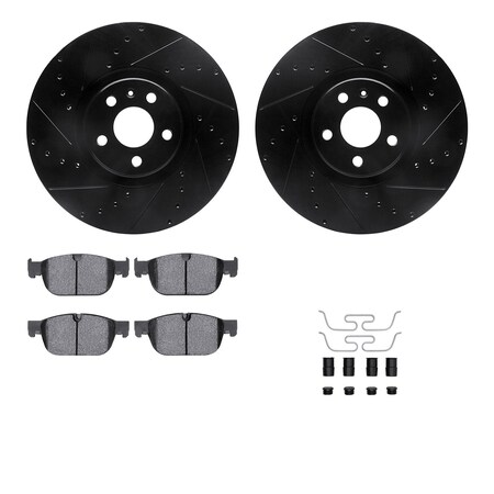 Dynamic Friction Company Front Brake Rotors Drilled and Slotted Black with 5000 Advanced Brake Pads includes Hardware - 8512-27051