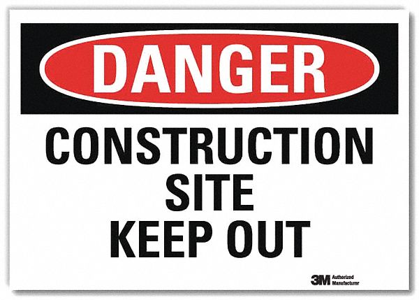 Smartsign U3-1249-RD_7X5"DANGER CONSTRUCTION SITE KEEP OUT" Reflective Self-Adhesive Decal, 7" x 5"