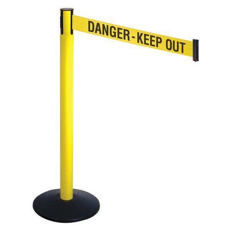Barrier Post with Belt, Post Material Aluminum, Post Finish Powder Coated, Post Height 40 in, Post Dia. 2 1/2 in, Base Type Sloped, Base Dia. 14 in, Base Material Cast Iron, Base Finish Powder Coated, Number of Belts 1, Belt Length 10 ft, Belt Color Yellow with Black Text, Belt Message Danger - Keep Out, Belt Width 3 in, Includes Hose Clamp Fixing and Wire Clip Belt End, For Use With Portable Posts Mfr. No. SUB-ME, SUB-SHOOK, SUB-WH, RE, Indoor, ADA Compliance No