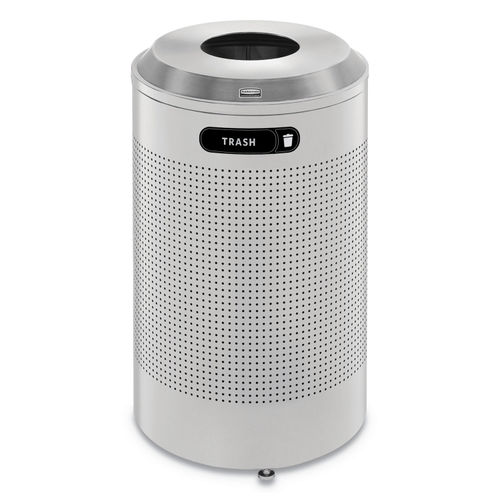Rubbermaid Silhouette Steel Receptacle - Round Receptacle With Lift-Off Lid And Trash Decal - 26 Gallons - Silver Metallic - 20.16" dia. x 31.25"H
