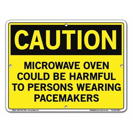 Vestil SI-C-23-B-AL-040 MICROWAVE OVEN COULD BE HARMFUL TO PERSONS WEARING PACEMAKERS Caution Sign, Aluminum, 0.040" Overall Size, 12.5" W x 9.5" H