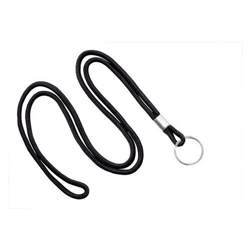 Black Round 1/8" (3 mm) Lanyard with Nickel Plated Steel Split Ring (Pack of 100)