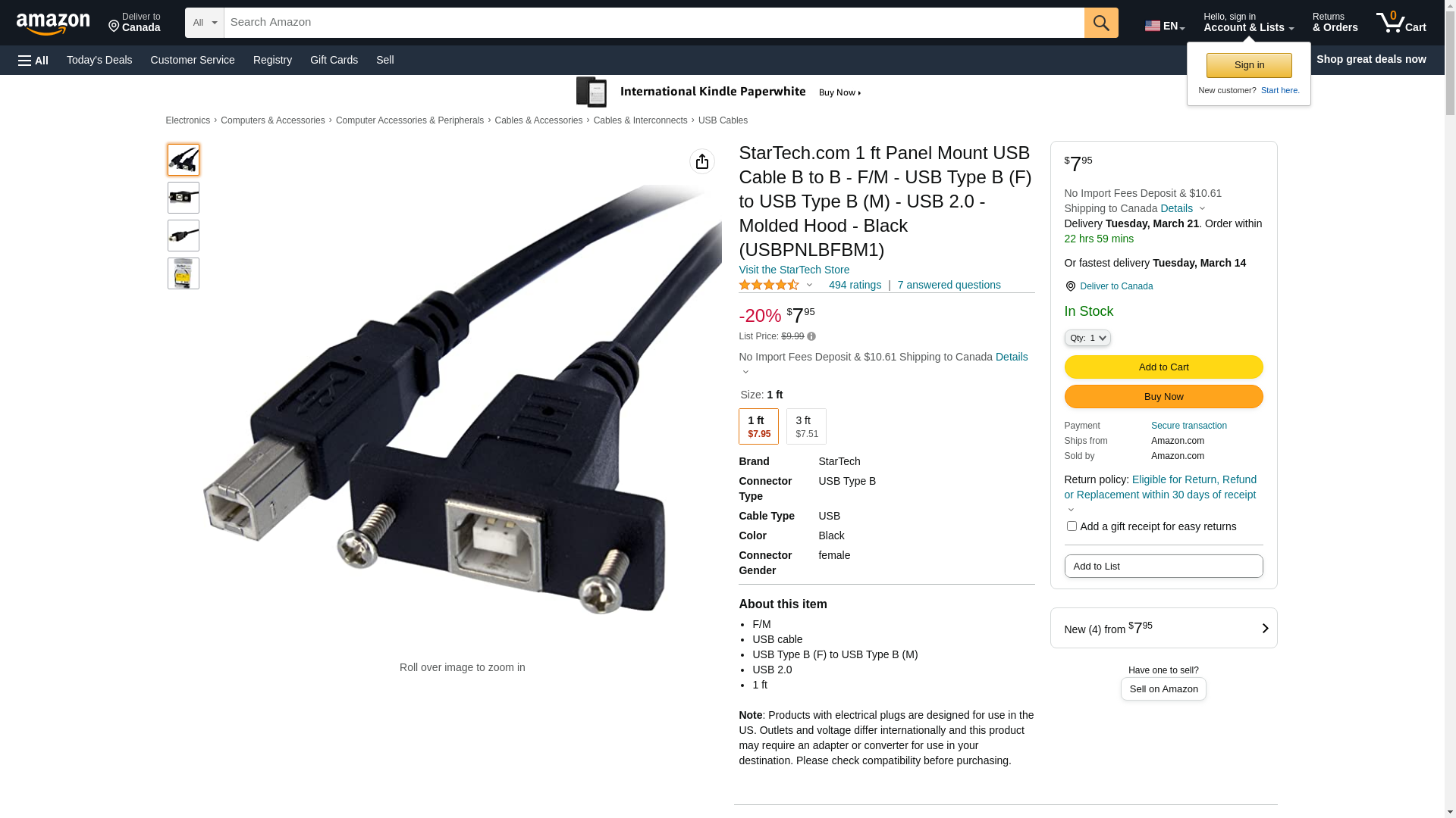 StarTech.com 1' Panel mount USB cable connects B male to B female devices for customized USB device solutions. Standard size molded hood for easy screw-in installation. Startech 1' USB 2.0 Type B Male To Type B Female Panel Mount Cable, Black Black USB cable that is compatible to connect with various devices. 1' length for easy access. Male-to-female cable design eliminates the need for separate adapters.