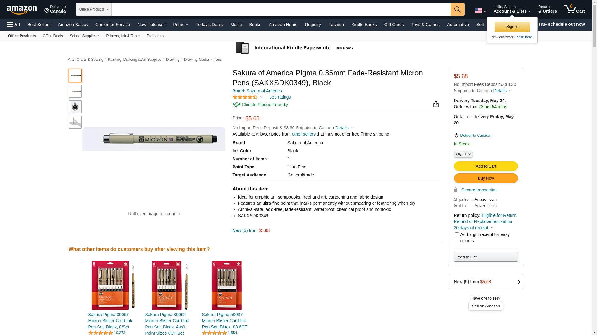 Sakura of America Pigma 0.35mm Fade-Resistant Micron Pens (SAKXSDK0349), Black