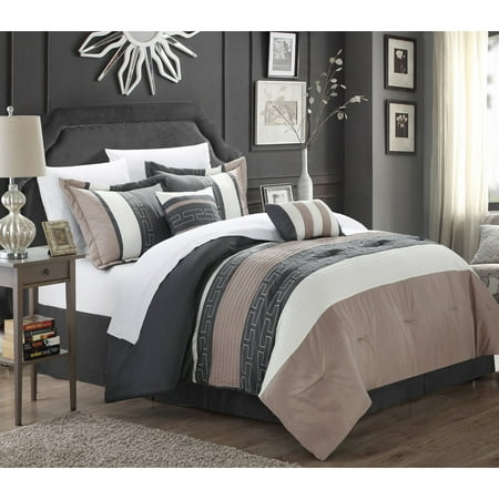 <br /> <ul> <li>King, comforter: 104 x 90 in.</li> <li>King, bed skirt: 78 x 80 x 14D in.</li> <li>2 pillow shams: 20 x 36 in. plus 2-in. flange</li> <li>1 decorative pillow: 18 x 18 in.</li> <li>1 decorative pillow: 12 x 18 in.</li> <li>Optional King, flat sheet: 108 x 102 in.</li> <li>Optional King, fitted sheet: 78 x 80 x 15D in.</li> <li>Optional 2 pillowcases: 20 x 40 in.</li> </ul>