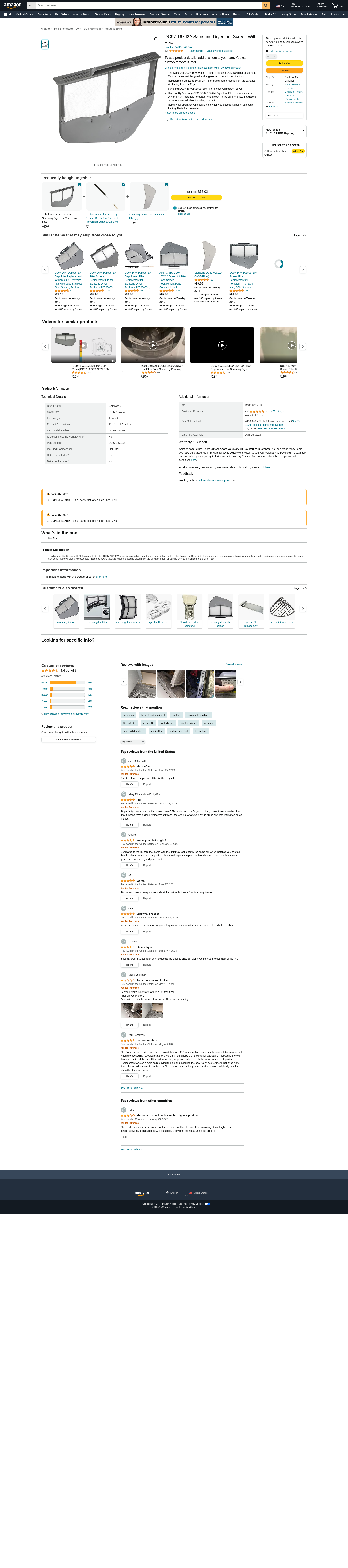 - Samsung DC97-16742A Dryer Lint Filter comes with screen cover