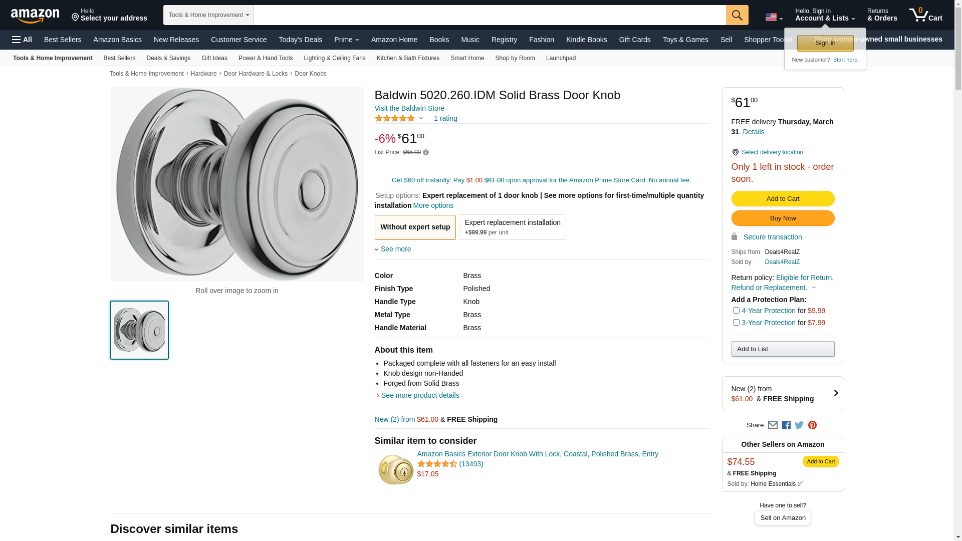 Baldwin 5020.260.IDM Solid Brass Door Knob