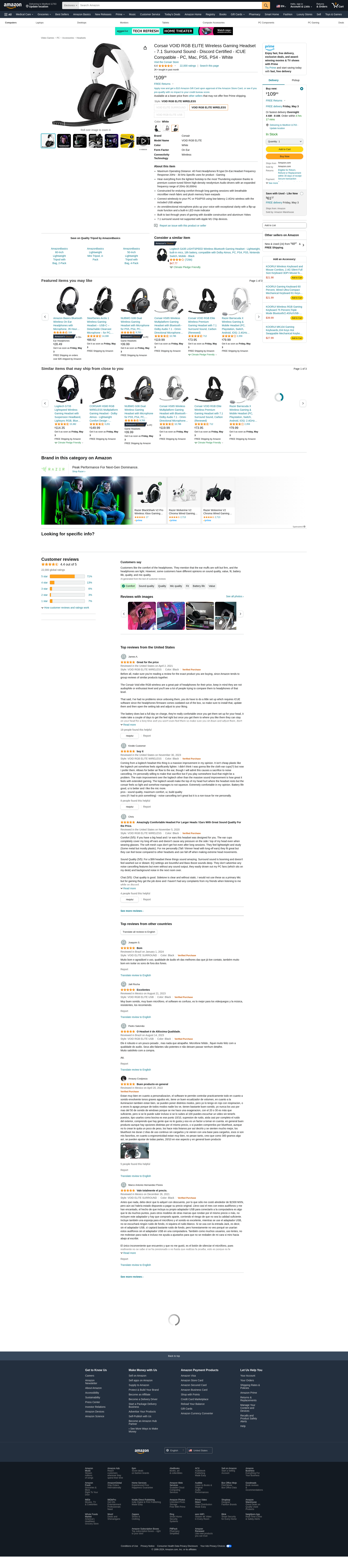 Corsair VOID RGB ELITE Wireless Gaming Headset - 7.1 Surround Sound - Discord Certified - iCUE Compatible - PC, Mac, PS5, PS4 - White