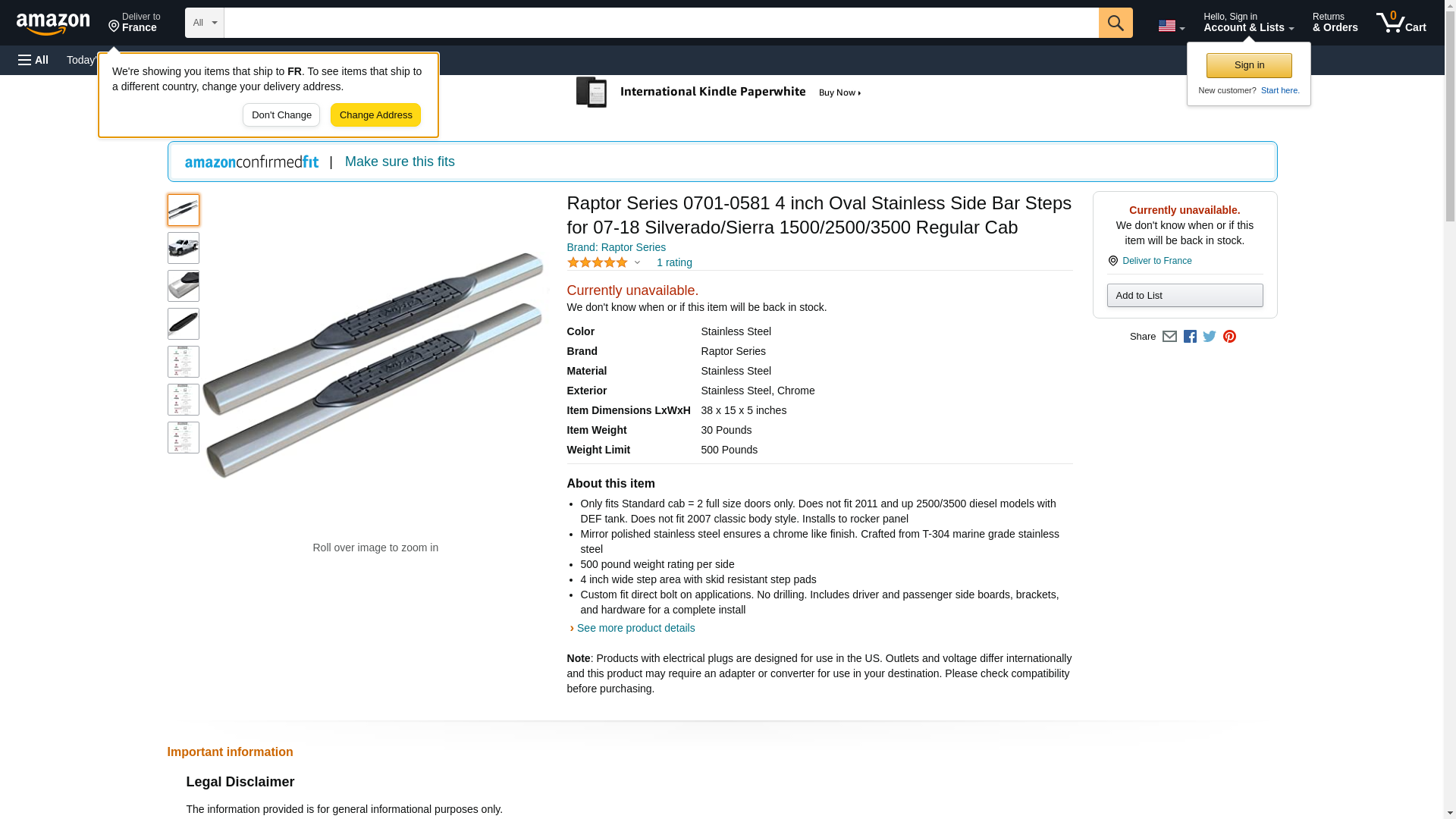 Raptor Series 0701-0581 (07-17) Chevy Silverado/GMC Sierra 1500/2500/3500 Regular Cab 4" SS Oval Steps (Rocker Panel Mount)