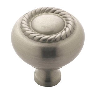 Set of 10. Amerock Metal Finishes Knob. Scroll. 1-1/4 in. Dia.. Satin Nickel. Lifetime Finish. 1-1/4 in. W x 1-1/8 in. H (0.2 lbs).