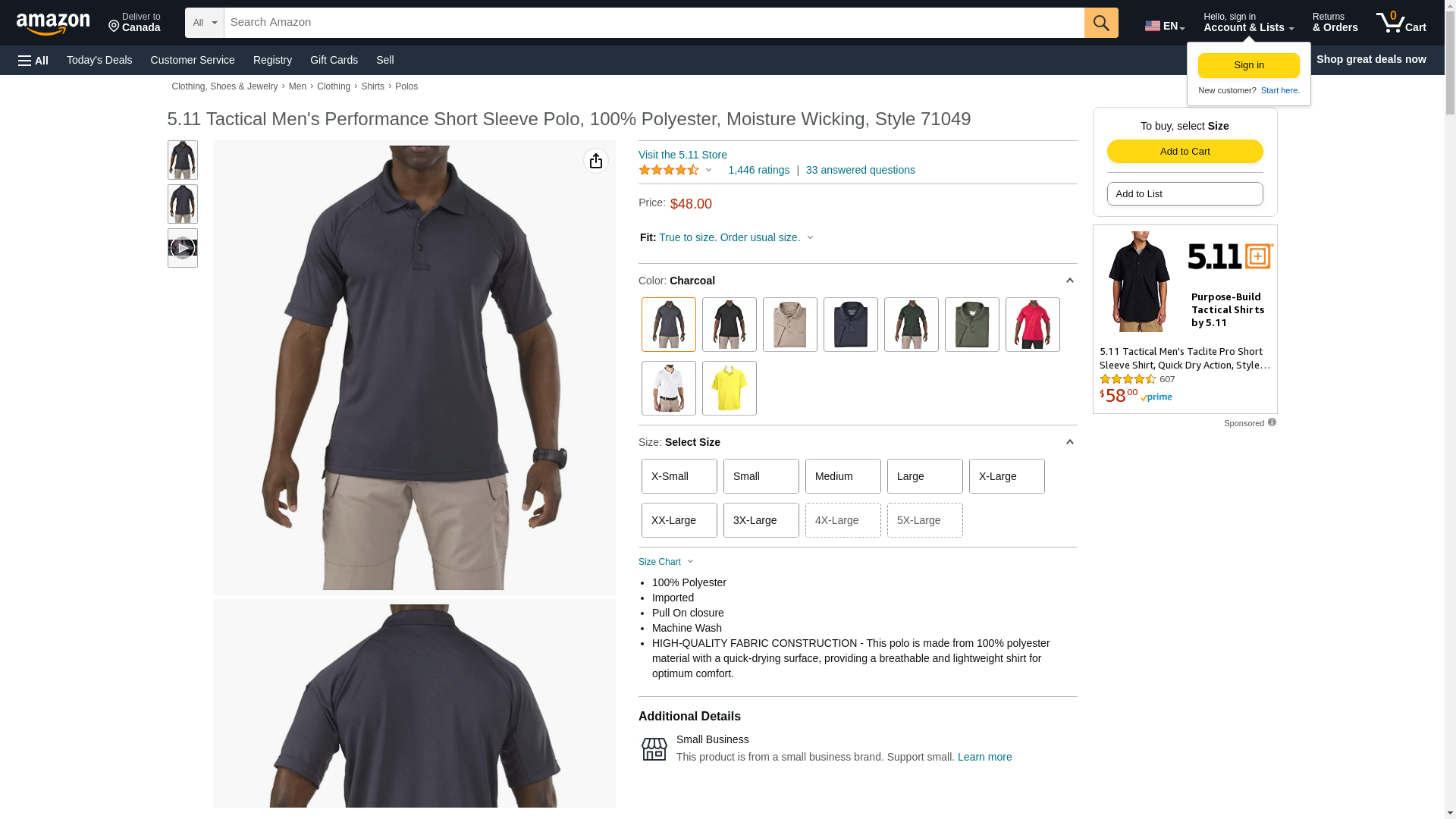 5.11 Tactical Men's Performance Short Sleeve Polo Shirt, Style 71049, Charcoal, 3X-Large