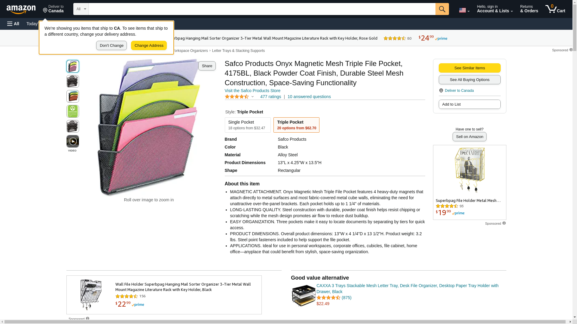 Safco? Onyx Magnetic Mesh Panel Accessories, Triple File