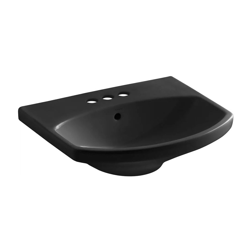 KOHLER K-2363-4-7 CIMARRON 21 INCH PEDESTAL BATHROOM SINK WITH 3 HOLES DRILLED AND OVERFLOW, BLACK BLACK