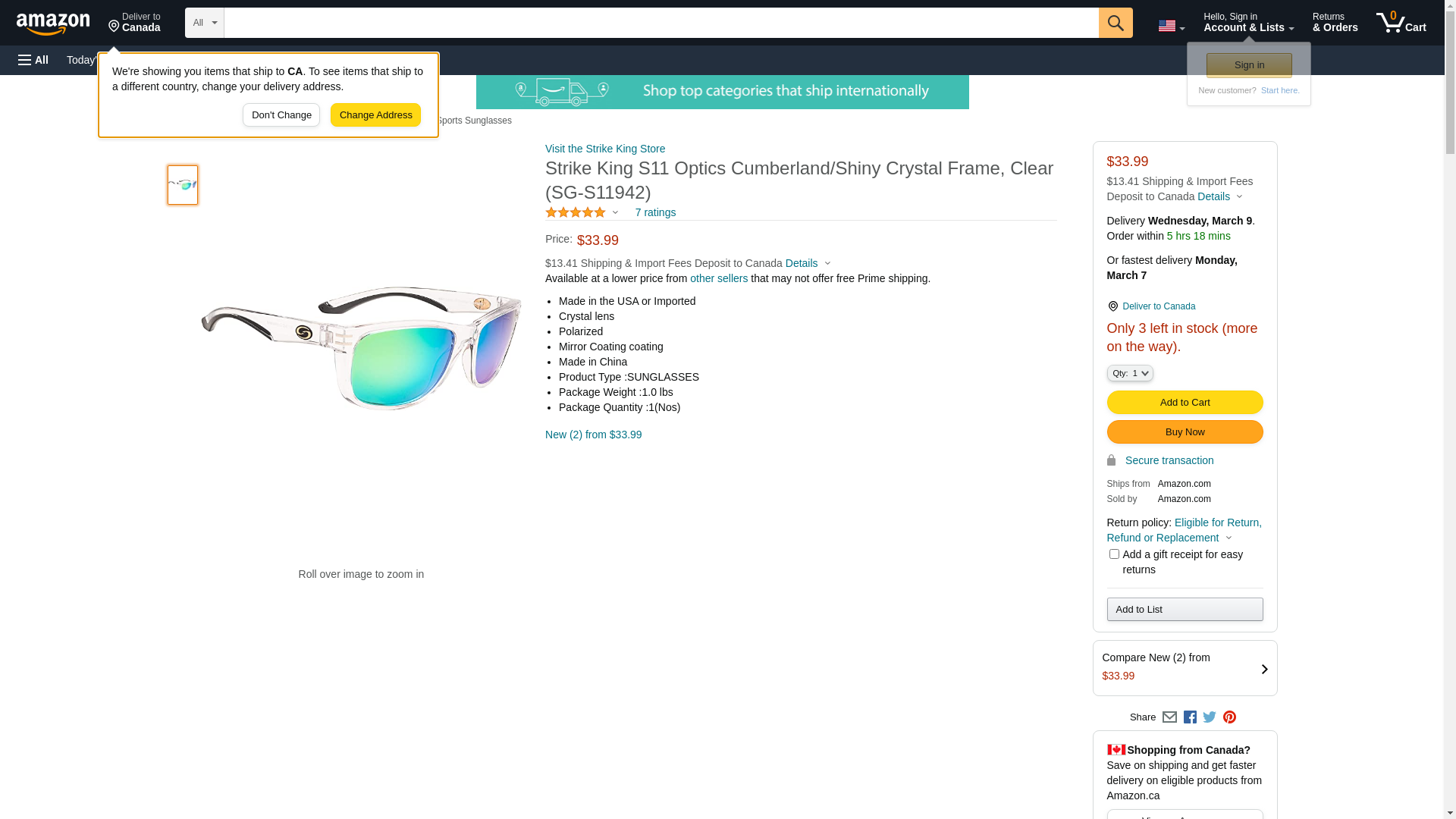 Strike King S11 Optics Cumberland/Shiny Crystal Frame, Clear (SG-S11942)