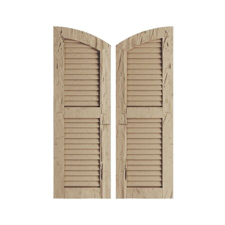 Ekena Millwork SHULVL18X76HHPR (70" Low Side) Timberthane Two Equal Louver w/Elliptical Top Faux Wood Shutters (Per Pair), Primed Tan, 18" W x 76" H