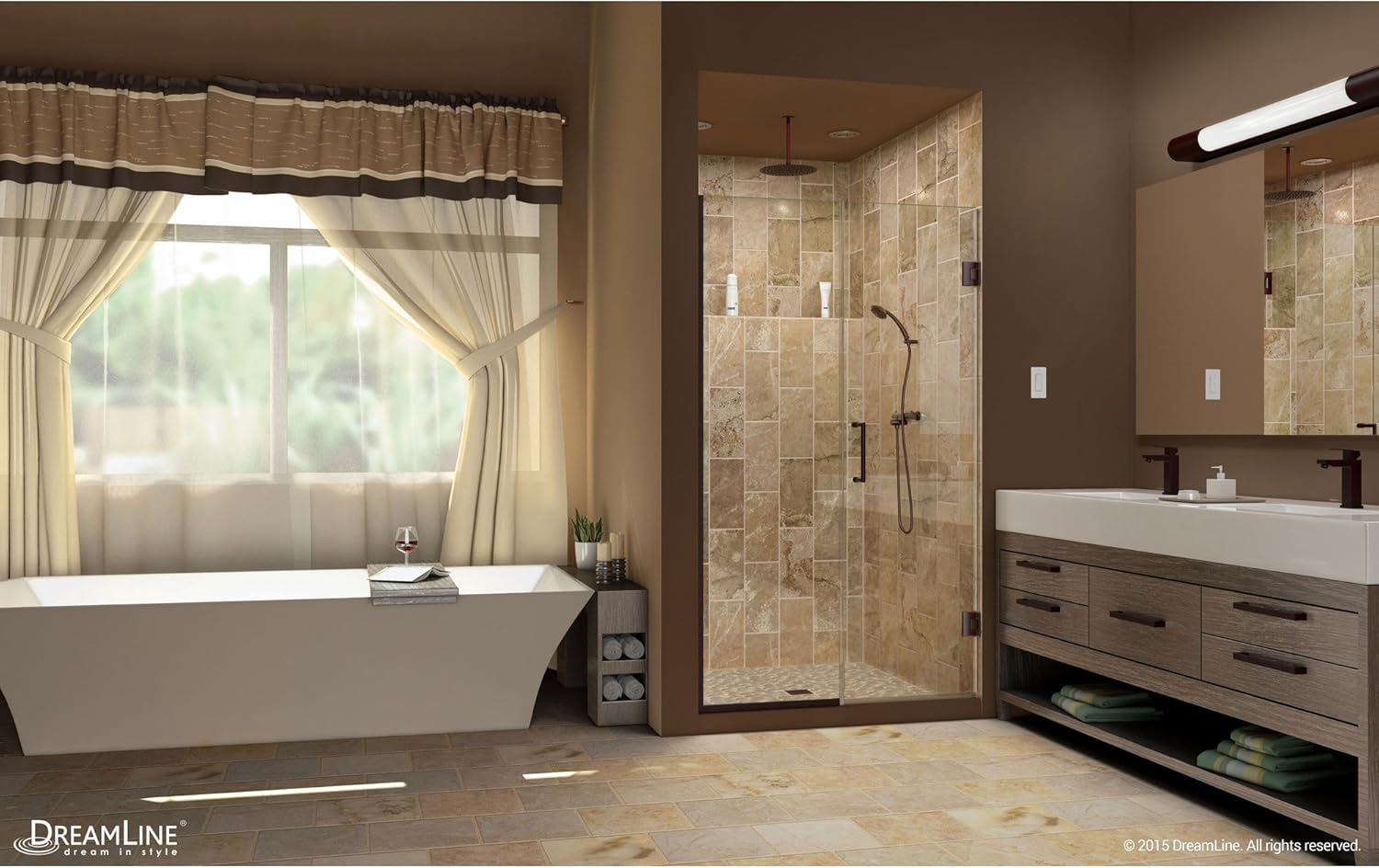 DreamLine Unidoor Plus 54-1/2 to 55"W x 72" H Hinged Shower Door, Oil Rubbed Bronze Finish Hardware