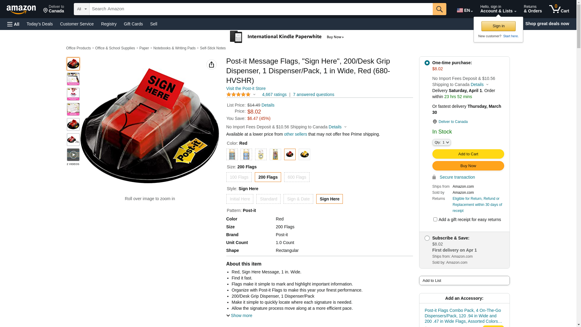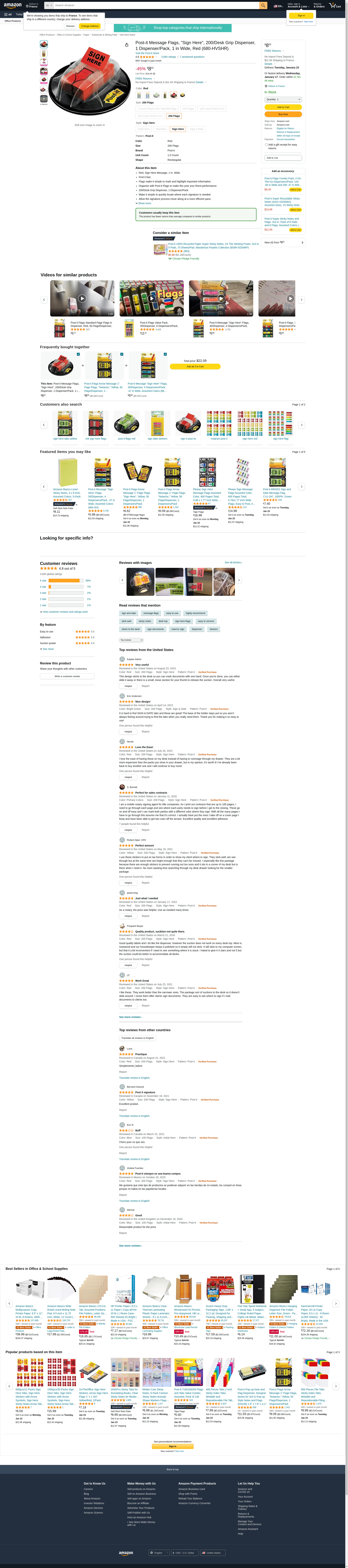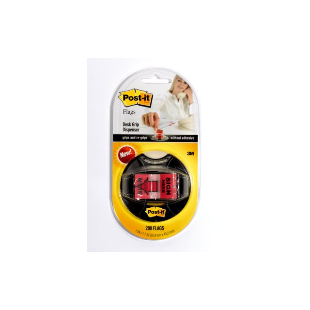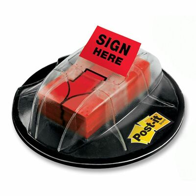 Post-it Message Flags, "Sign Here", 200/Desk Grip Dispenser, 1 Dispenser/Pack, 1 in Wide, Red (680-HVSHR)
