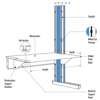 IAC Industries QS-2001344 Single Sided Add-on Unit, ESD, 60"x30"x72", Gry/Blu, QS Dimension 4 Series | JensenTools