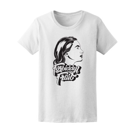<ul> <li>Brand: Teeblox | Forbidden fruit. Vector handwritten lettering. Hand drawn illustration of female profile. Template for card, poster, banner, print for t-shirt, badge, logotype.</li> <li>White | 100% COTTON | T-shirt | </li> <li>Perfect for this spring season </li> </ul>