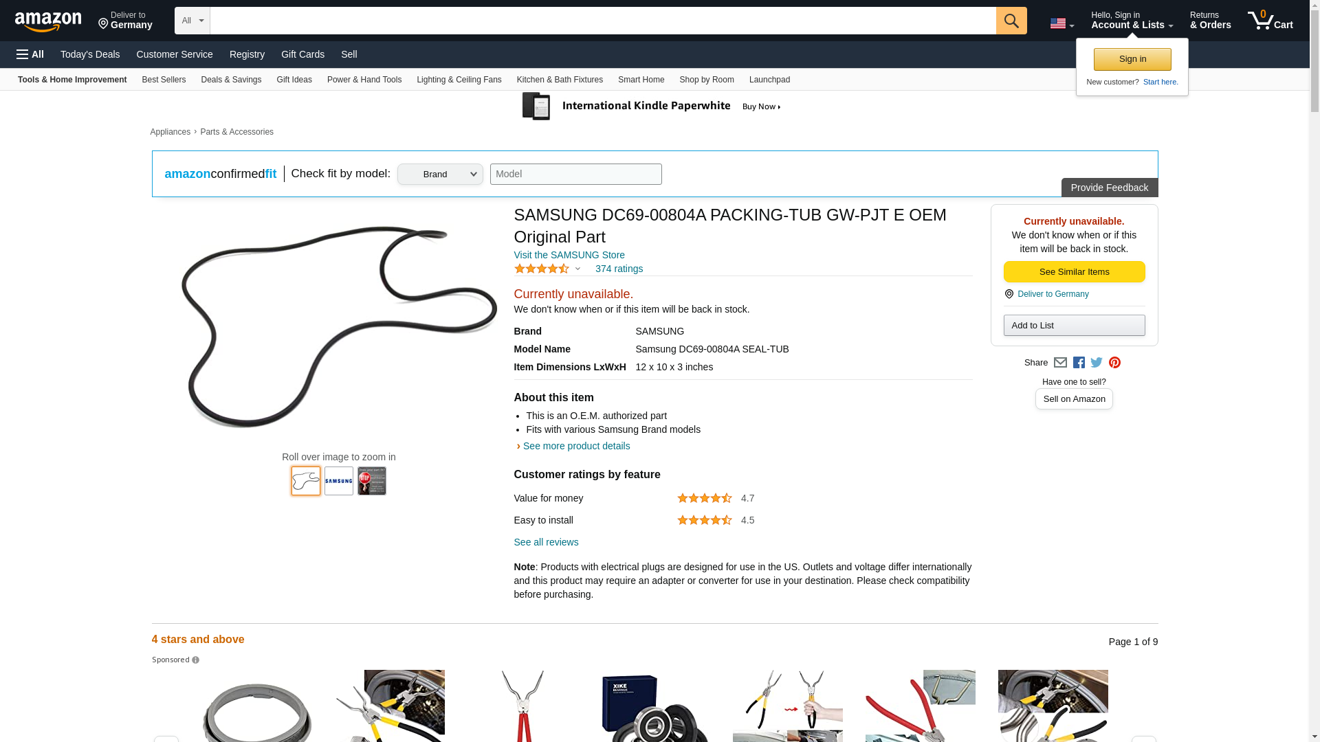 ![]() midwestapplianceparts.com | DC69-00804A-SAM-P | 1 | -2 | 1 | 1 @ $16.56 |