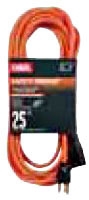 Extension Cord, General Use Indoor/Outdoor, 14 AWG, 3-Conductor Grounded, 25', Safety Orange PVC Jacket, 125 Volts, 15 Amps, 1875 Watts, NEMA 5-15P/5-15R, Straight Plug, Type SJTW, UL Listed